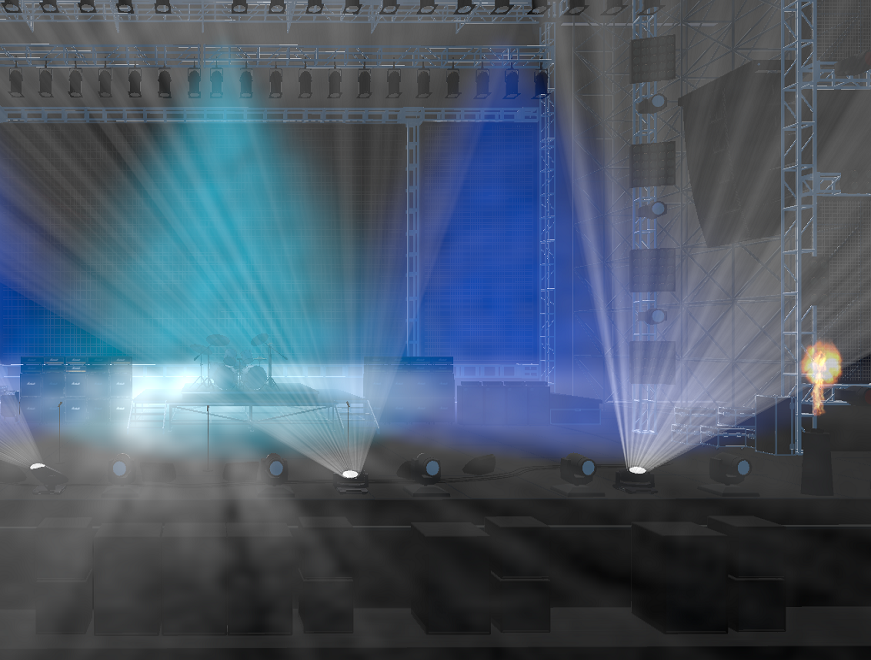 Using a powerful editor, build and tune a custom stage show experience. Add lighting, lasers, pyrotechnics and